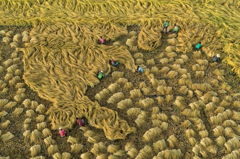 La photo paysage de Steinmetz uniforme aisément le sujet, au couvent des minimes le photographe nous délivre un travail esthétique toujours vu d’en haut. Ses clichés photographiques couvrent la période de 2018 à 2022. Soucieux de l’alimentation et des ouvrages agricoles George Steinmetz évoque la rudesse des paysans qui sont obligés d’avoir souvent des conditions modestes pour cultiver la terre. Ses photos marquent aussi l’évolution qui s’opère dans l’agriculture écologique du XXIème siècle, masquant la malnutrition dans les pays pauvres.