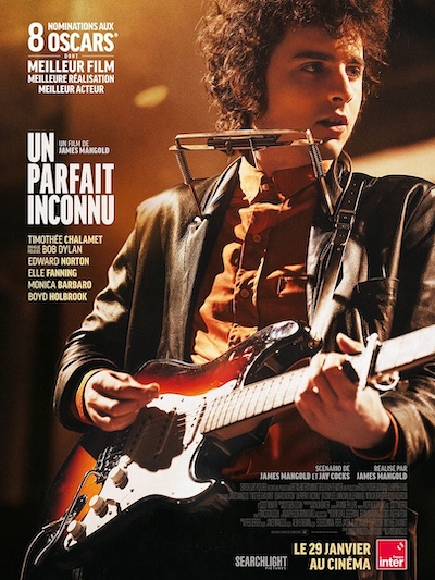 Un parfait inconnu, un film au genre musical et dramatique, réalisé par James Mangold, est un biopic en hommage au chanteur Bob Dylan incarné par l'acteur français Timothée Chalamet, adapté de l'ouvrage Dylan Goes Electric d'Elijah Wald. Date de sortie nationale en France : le 29 janvier 2025, après la sortie aux États-Unis, le 10 décembre 2024.
