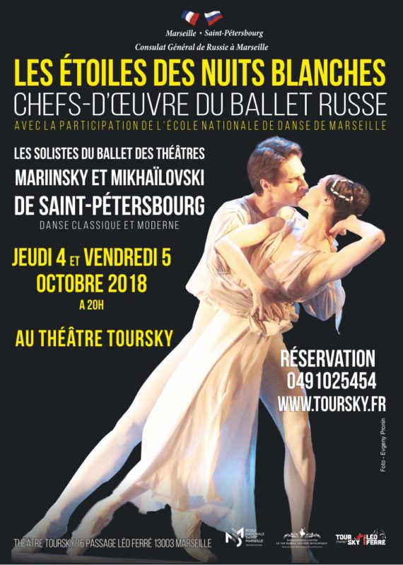 Avant de plonger à nouveau, du 9 au 16 mars 2019, dans l’âme slave au cours du 24e Festival Russe du Théâtre Toursky, accueillant les plus grands artistes, les 4 et 5 octobre 2018, le Théâtre Toursky aura la chance de voir se produire sur ses planches les dignes successeurs des grandes traditions du ballet russe avec les danseurs étoiles des théâtres Mariinsky et Mikhaïlovski de Saint-Pétersbourg : Marat Shemiunov, Irina Perren, Margarita Rudina, Alexeï Nasadovith, un événement unique avec les plus grands numéros des légendaires ballets du répertoire mondial : « Le Corsaire », « Don Quichotte », « Shéhérazade », « Talisman » ou encore « la Mort du Cygne » créée en 1907 par Mikhail Fokin pour Anna Pavlova sur une musique de Camille Saint-Saëns… Ce sont les plus brillantes performances de danse académique qui se puissent concevoir aujourd'hui, dans des extraits du répertoire classique ou des compositions contemporaines, réalisées par des danseurs étoiles issus de la prestigieuse Académie du Ballet Russe Vaganova.