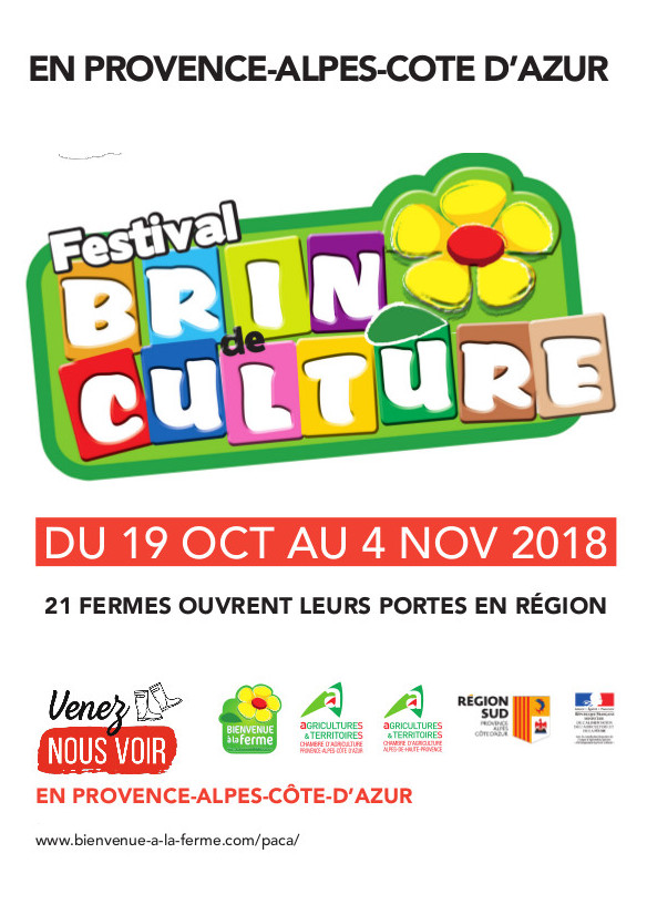 Festival Brin de Culture en Région Provence Alpes Côte d'Azur, du 19 octobre au 4 novembre, un festival culturel qui s'inscrit dans l'événement national "Automne Fermier " du réseau Bienvenue à la Ferme.