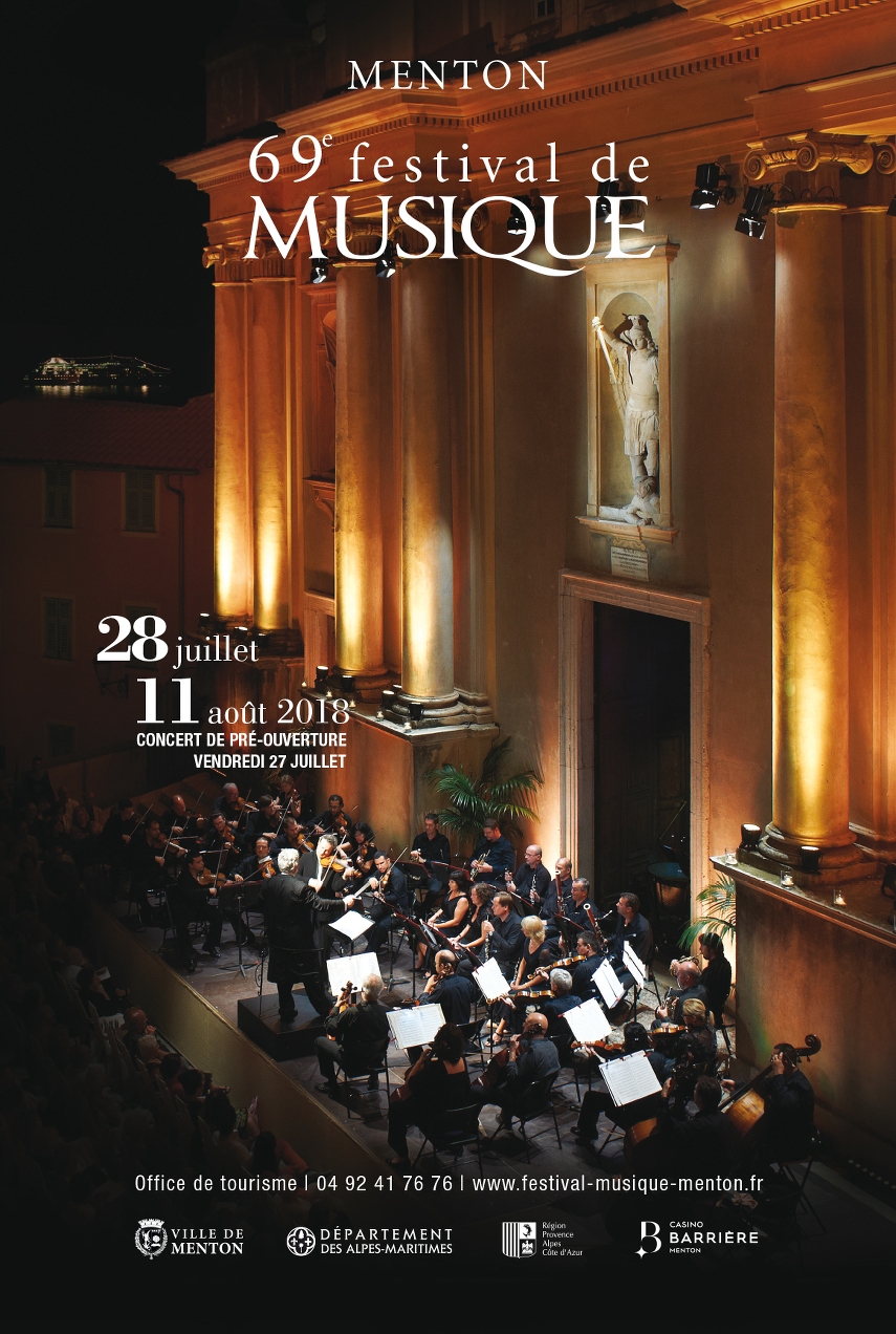 Festival de Menton, Festival de Musique du 28 juillet au 11 août 2018 sur le Parvis de la Basilique Saint-Michel Archange ; le Musée Jean Cocteau Collection Séverin Wunderman, l’Esplanade Francis-Palmero.