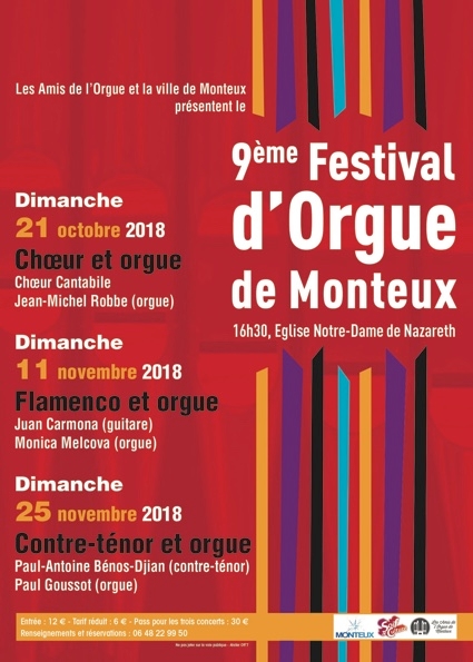 Pour cette 9ème édition du Festival d’Orgue de Monteux qui aura lieu les dimanche 21 octobre, 11 et 25 novembre,…