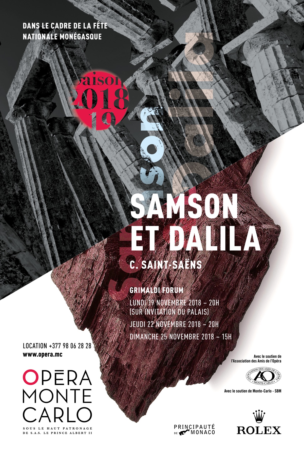 La dernière représentation de Samson et Dalila fût donnée à l'Opéra de Monte Carlo en 1979. La programmation 2018-2019 offre au public une redécouverte du compositeur qui admirait la principauté . De sulfureuses relations amoureuses de Samson et Dalila qui n’ont cessé de susciter condamnations morales et fébrilités inavouables de cette fable biblique au parfum capiteux.