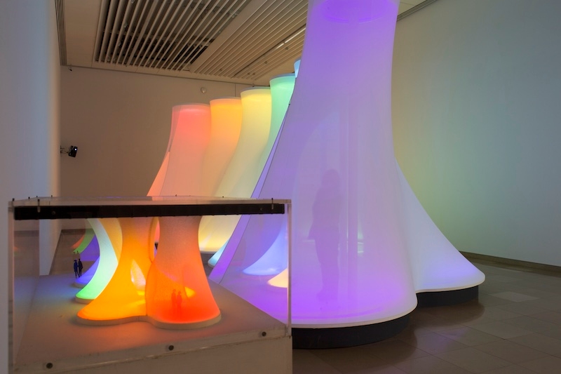 Spectrum. An Afterthought, 1975–2014, tissu synthétique, lampes au néon, filtres colorés, acier, aluminium, contreplaqué, plastique. The Lithuanian National Museum of Art. ©Antanas Lukšėnas. (c) A. Kasuba
