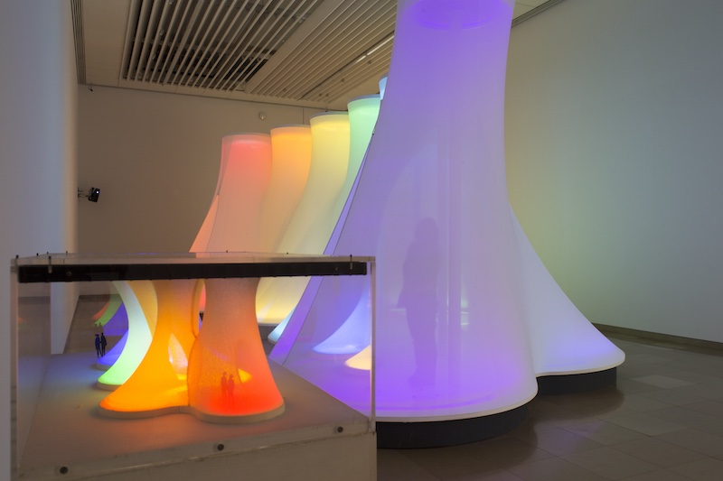 L’œuvre marquante au sein de l’exposition est sans nul doute Spectrum an Afterthought (1977) qui propose « une immersion sensorielle dans l’arc-en-ciel ».