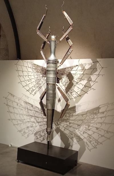 Le 2 novembre dernier avait lieu à l'Espace Culturel Lympia de Nice, le vernissage de l'exposition Anima (ex) Musica, la symphonie des insectes géants, à voir du 2 novembre 2024 au 26 janvier 2025. Une exposition sur le reflet de l'environnement, le recyclage, la transition écologie, avec pour oeuvres, 12 sculptures en bois réalisées à partir de fragments d'instruments de musique.