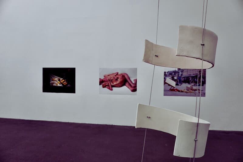 L’exposition par le placement des oeuvres imbrique totalement la création dans un parcours initiatique. Kamil Guenatri, n’a pas hésité à travers ses performances de mettre en scène son corps anorexique ! Son intention n’est pas de choquer, mais bien au contraire de produire en nous, une prise de conscience sur la nourriture, source de vie, mais aussi en filigrane mort des animaux que nous consommons, pour notre survie.