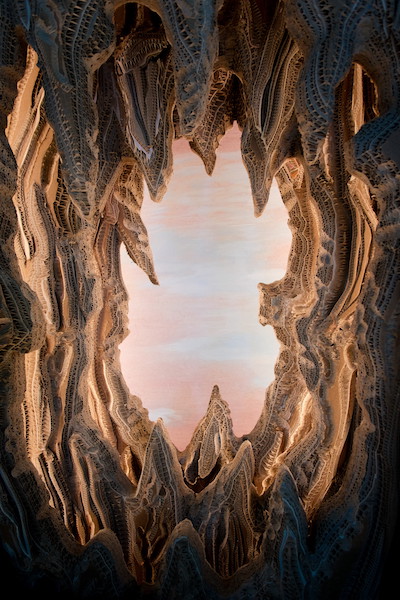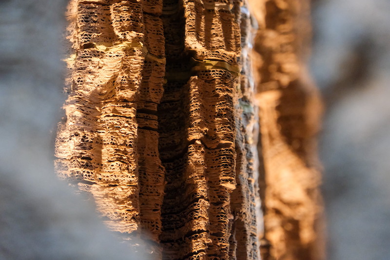 C’est la simplicité, la modestie de ce matériau, le carton, sa plasticité, qui séduisent Eva Jospin, un rebus transitoire qui n’impressionne pas, qu’on peut manipuler et reformer à profusion. Ce ne peut pas être fait avec la pierre. Pour Eva Jospin, c’est aussi le matériau de la liberté, un appel à la créativité.