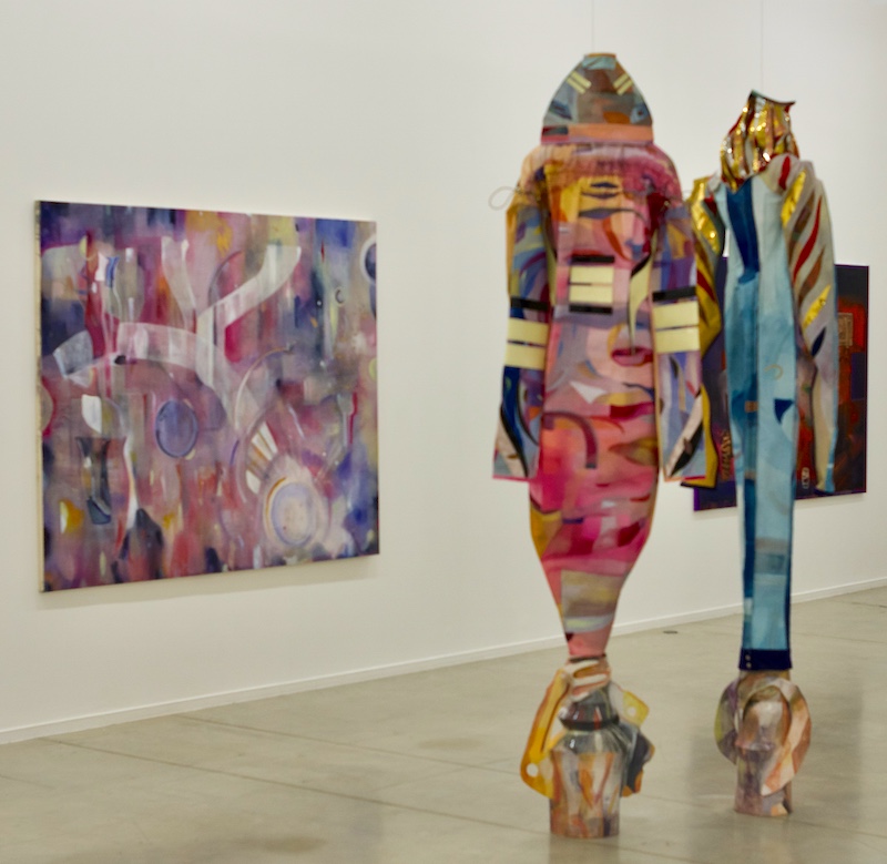 Imprégné par la figure humaine, le musée Fabre de Montpellier avait présenté fin 2022 jusqu’au printemps 2023 « Le théâtre du Silence ». Une série de 40 grands formats autour du travail de la silhouette humaine métamorphosée, comme ombre ou avec de profonds aplats colorés. C’est peut-être dans ce prisme de recherche, que l’artiste a en autre guidé les étudiants des Beaux Arts, dans cette envie de peintre sur des tableaux aux formats XXL.