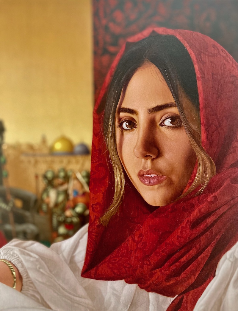 Dans ses esquisses et portraits attitrés, il associe la culture du Moyen-Orient, les mythes et l’iconographie mésopotamienne aux identités occidentales contemporaines. Ses peintures réunissent une profusion de détails ornementaux et de couleurs chatoyantes avec une construction magistrale de lignes et de plans.