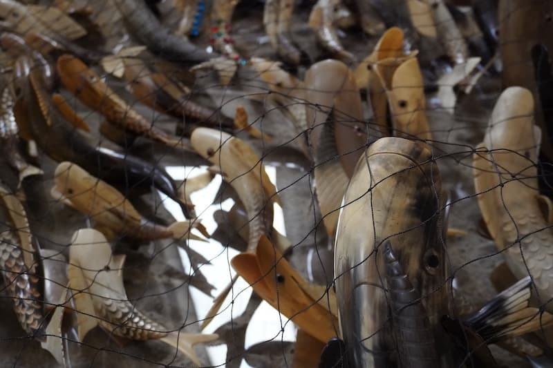 Hervé Di Rosa est sûrement l’artiste Sétois qui garde un œil sur cet art modeste que l’on peut retrouver chez les uns et les autres, dans les habitats lors d’achats compulsifs d’objets en tout genre. À Avignon, l’exposition est à découvrir avec cette curiosité qui habite le regard des visiteurs, certaines pièces sont incongrues surtout quand des cornes d’animaux se transforment en créatures aquatiques, poissons aux allures étranges par des écailles sculptées dans la matière. D’ailleurs son collectionneur Pierre Taugourdeau a fait le don en 2022 de ces fameux poissons à Hervé Di Rosa, qui a exposé ses objets à Lisbonne au musée en 2023, ville actuelle de l’artiste. Hervé Di Rosa détient les clés de ses ateliers pour l’élaboration de ses tableaux et conserve une multitude d’objets qu’il pense exposer dans différents lieux de la planète.