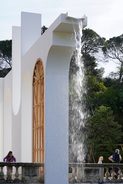 Ces deux constructions éphémères qui se rejoignent dans leur monumentalité, présentées dans la partie centrale du Jardin, créant alors un imaginaire fécond, avec pour question « Mais d’où surgit cette eau ? ».
