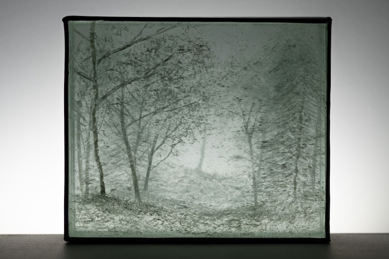 Avec ses plaques de verre, l’artiste nous offre un univers unique, une atmosphère sensible jusqu’à une certaine poésie. Les quarante œuvres de petits formats sont ici présentées dans un espace sombre et nous laisse un souvenir mémorable. (Palais de l’Archevêché).