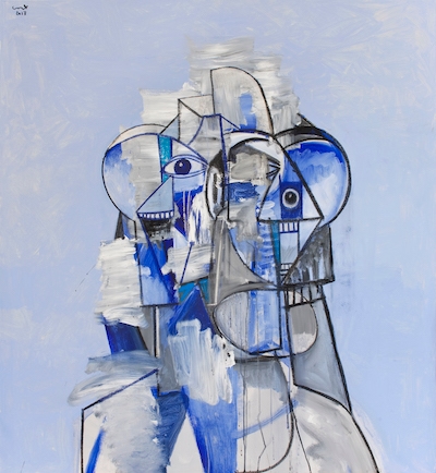 George Condo s’emparant du Cubisme en a inversé les intentions, l’a humanisé. Il s’est fait le tenant d’un « cubisme psychologique », a voulu voir dans les déformations de Picasso ou de Braque, non pas l’avènement d’une « peinture pure », mais une exploration réaliste de la psyché humaine. Ce faisant, Condo place ses pas dans ceux de Fénéon qui, visitant l’atelier de Picasso au temps des Demoiselles d’Avignon, conseille à celui qui était encore un jeune artiste « de se vouer à la caricature… » Condo placera la déformation cubiste au même niveau que celle des caricaturistes : une façon singulière de réinventer la Figuration.