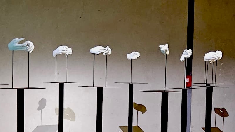 Esmeralda Kosmatopoulos, est née en 1981 en Grèce vit et travaille au Caire. Elevée en France et vivant en Égypte, Esmeralda Kosmatopoulos se définit avant tout comme une artiste multiculturelle animée par le désir de délimiter les contours tant physiques, culturels et spirituels de sa propre identité. Cette approche existentielle irrigue l’ensemble de sa pratique qui questionne ainsi la définition et la construction de l’identité, de la mémoire personnelle et des histoires collectives à l’ère post-Internet. Esmeralda Kosmatopoulos, avec Fifteen Pairs of Mouths, étudie la relation entre le corps humain et les appareils technologiques et explore le nouveau rôle de la main en tant que véhicule de communication. Quinze paires de mains réalisées en plâtre, sont exposées comme des sculptures antiques. Et donc comme des témoins d'une époque où cette fois-ci, la machine nous prend par la main...