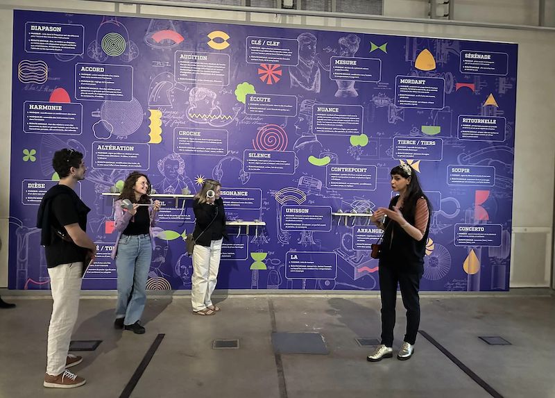 C’est à partir de là que Géraldine Aliberti trouvait intéressant qu’un orchestre se pose la question. Dans l’exposition, il y a toute une tapisserie qui met en avant le vocabulaire musical utilisé aussi dans le champ social et politique. Dans notre société, on pensait qu’on était très visio centré mais pour le monde sourd on est quand même très audio centré. On pourrait communiquer avec un aveugle mais il nous est très difficile de communiquer avec un sourd, sauf par l’écriture.