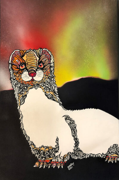 V.L.R : J’ai employé précisément le mot « acteur », car chacune de vos toiles raconte à mes yeux une histoire, exprime j’allais dire presque des sentiments humains, à travers les regards, tous différents, comme celui de celle que j’ai baptisée « Mademoiselle Hermine », quelque peu hautaine qui semble fière de son statut au sein de sa famille !