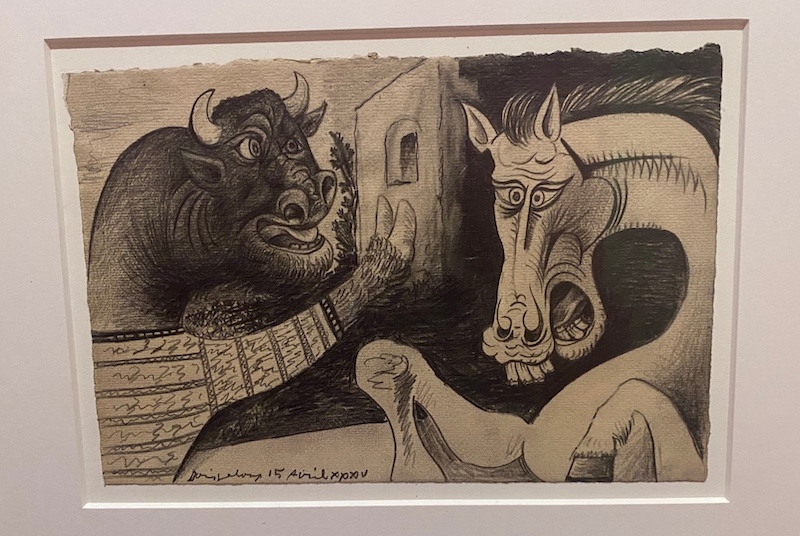 Il n'y a jamais eu un artiste qui ait eu des liens aussi forts avec un animal, le taureau. Sa première huile, sa première sculpture, sa première gravure, c'est un picador. Le tableau devant lequel il est mort, en avril 1973, c'est une scène encore avec un taureau. C'est assez obsessionnel, mais le taureau c'est sa culture, il est né à Malaga, c'est une ville taurine. Quand il était petit, on l'a amené à la corrida, le dimanche, pour le récompenser.