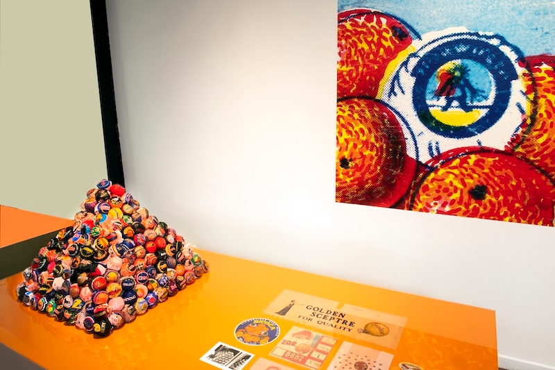 Les 6 sections mises en place ont toutes un rapport entre elles : origines naturelles et mythologiques, agriculture et folklore, import-export, vitamines, commerce intergalactique, arts des collections et de l’impression. Le visiteur est guidé par l’abondance des visuels venus de toutes parts. On apprend par les motifs les noms de marques ou les personnages qu’ils portent. Cette mise en avant de l’histoire des oranges où la mythologie puise ses références dans la fertilité où la bonne santé se véhicule par l’expression « Bonne mine vaut mieux que lettres de recommandation ». On choisira dans la multitude des slogans celui qui sera le plus percutant.