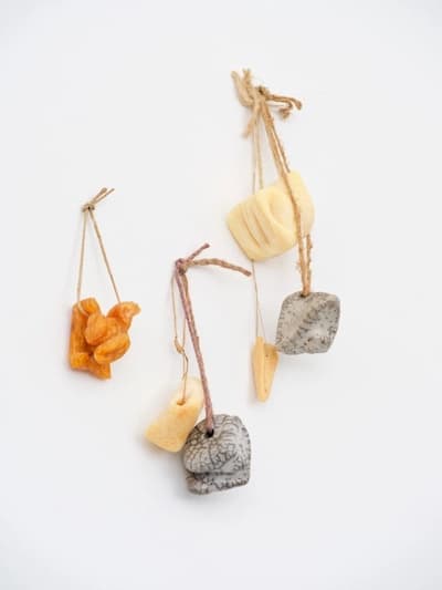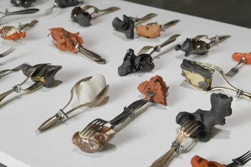 À travers ses œuvres, Myriam Mihindou explore les mots de la langue Française, comme si ses voyages en Egypte, au Maroc où à la Réunion sont en quelque sorte la ligature d’un carnet de rencontres où les objets et les formes s’accomplissent de son regard artistique. D’ailleurs elle évoque dans son travail les matériaux nobles tels que le cuivre, ou la terre qui se mélangent avec la soie ou le thé, débridant de la sorte des langages imaginaires. Dans la série Embody de 2017, il s’agit d’un jardin médicinal, elle met en lumière l’interconnexion des différentes formes du vivant, où le divin croise plusieurs regards, dont celui du visiteur (salle 8). Autre parcours dans la continuité, la salle 9 où « Fleurs de peau » (1999-2024), fournit la matière à l’artiste qui rythme son travail au gré des fantaisies des savons de Marseille … (Savons de Marseille, savons, chanvre, épingles, aiguilles, cire, coton, latex, kaolin)