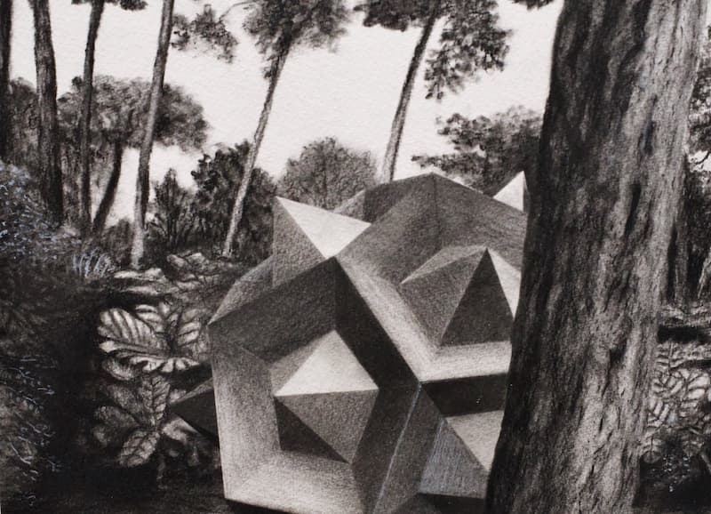 Son travail en atelier s’harmonise à Montreuil et prend son inspiration à Sète dont il a signé un protocole avec la ville de Sète. Dans la chapelle du Quartie-Haut, son art s’ouvre sur le thème de la fenêtre, passage obligé vers un autre monde, le blanc et l’aplat de couleurs unies offrent aux visiteurs des angles où la forme architecturale prédomine la matière. « Perspectiva Corporum Regularium n°15 sur paysage n°46 » est surement l’oeuvre de 2025 de la pierre noire sur papier (65 X 50 cm) qui symbolise le mieux l’artiste dans sa quête de l’exploration de la forme associée à la matière.