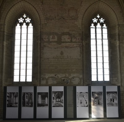 Dans une scénographie s'inspirant d'un cabinet d'architecte, la grande chapelle accueille une quarantaine de kakémonos présentant un fonds photographique exceptionnel donnant à voir des salles du Palais des Papes avant, pendant et après la première phase de restauration du monument interrompu par la Grande Guerre.