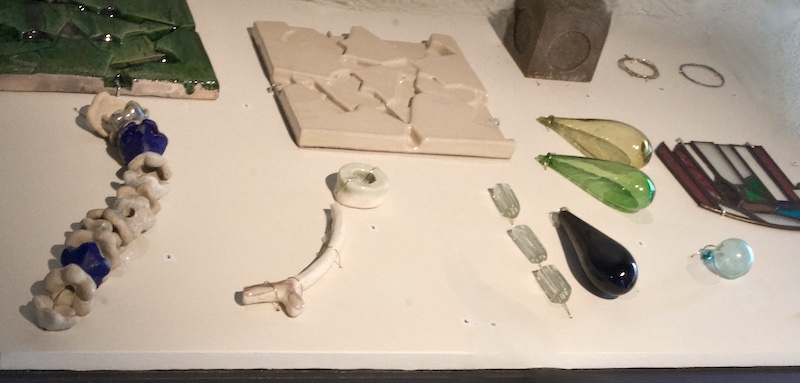 Sara Ouhaddou surfe sur la « technwé » qui désigne à la fois l’art et la technique. Cependant dans ce perfectionnement des ustensiles ancestraux, l’artiste s’inspire des formes en y rajoutant du verre coloré faisant office de totems fragiles.