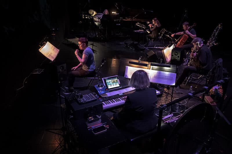 Patrick Defossez – Déjà il faut préciser que le terme musique contemporaine appartient originellement à une strate historique qui va de 1950 à 1965. Après ce sont des surgeons de chapelles musicales, de catégories musicales. Aujourd’hui on parlera davantage de musiques de création. On parle de nouvelles musiques. Si vous mettez par exemple ‘musique contemporaine’, le niveau de programmation est égal à zéro. On essaie, par néologisme. De toute façon, c’est vrai qu’il faut aussi inventer autre chose. Comme vous l’avez remarqué, la mixité des esthétiques dans nos pièces, est assez logique. Déjà, on est de culture différente. Moi je suis de pays beaucoup plus haut que la France, donc on n’a pas du tout la même culture. Entre la différence de langues et la différence entre le parcours musical. Anne est beaucoup plus, historiquement, jazz, musiques improvisées bien que j’en ai pratiquées à grande échelle, bien évidemment. Mais j’ai une culture vraiment classique à la base et par extension à la Berklee School de Boston, c’est autre chose.