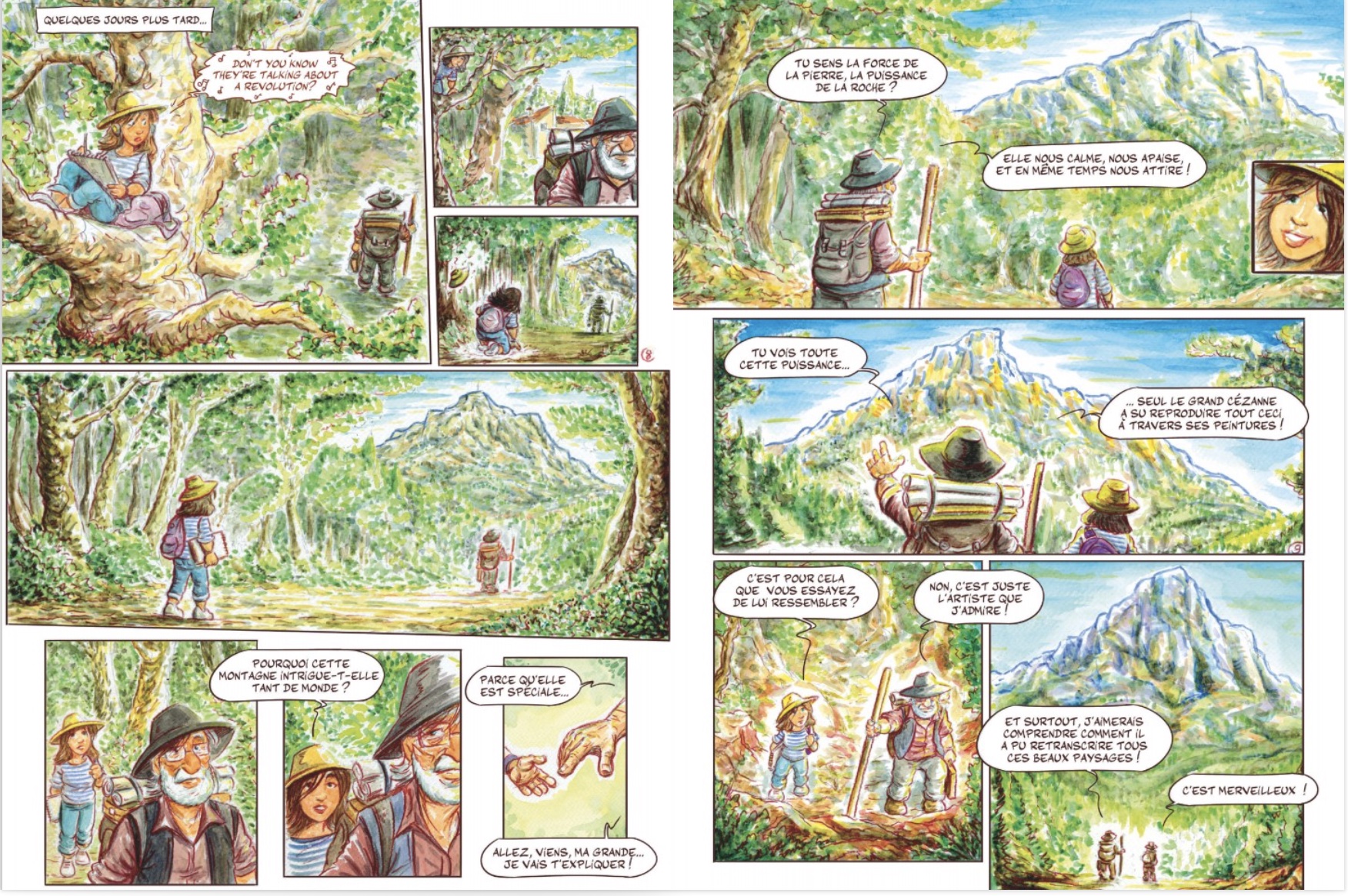 L'histoire de cet album débute en 1987. Manon, âgée de 11 ans, s'installe avec sa famille à Aix-en-Provence. Elle se promène souvent sur la route Cézanne où elle rencontre un retraité qui peint. Grâce à ses explications, la vie de Cézanne défile. Cet album nous embarque dans une déambulation intime et visuelle à travers les paysages de la Provence qui ont forgé l'œil du maître d'Aix, de la silhouette immuable de la Sainte-Victoire aux doutes qui ont jalonné sa vie.