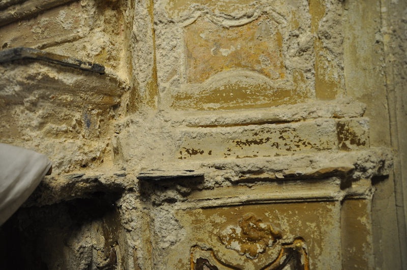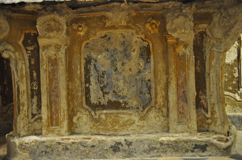 La première intervention réalisée pour le Cabinet d’architecture Renzo WIEDER a donc consisté à arrêter les infiltrations d’eau provenant du sol et des ruissellements du rocher en amont. Une restauration des chapelles est ensuite possible. Les sols en marbres composés de dalles en marbre blanc et cabochons en marbre noir seront restaurés. Les murs et voûtes des chapelles sont également à nettoyer et à traiter pour être repeints. Les plinthes des piliers sont à rebâtir au mortier de chaux, pour certaines, et à repeindre.