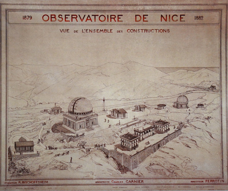 L’Observatoire de Nice, labellisé « Patrimoine du XXe siècle » en 1994, est une vraie curiosité à découvrir. D’abord parce que Charles Garnier a conçu cet ensemble fonctionnel de concert avec Gustave Eiffel, ensuite parce que ce projet scientifique imposait un certain type de contraintes auquel Charles Garnier n’était pas habitué. L’initiative en revient à Raphaël Bischoffsheim (1823-1906), centralien, banquier, député des Alpes maritimes, et mécène passionné d’astronomie qui connaissait bien Charles Garnier pour lui avoir demandé de lui construire une villa à Bordighera.