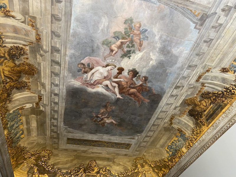 A l'intérieur du bâtiment, un attachement à la majesté se perçoit facilement: les portes sont ornées de dorures. Dans plusieurs pièces, les peintures des plafonds à cinq mètres de hauteur sont attribuées à Pierre II de Mignard. Elles représentent des personnages de la mythologie tel que Bacchus, le Dieu du vin qui trompe Ariane, et les quatre saisons. Cela compose une belle guirlande de couleurs pleines de nuances et de délicatesse. Dans l'alcôve réservé à la nuit, les murs étaient autrefois recouverts de soie. Des éléments ont pu être sauvegardés. Le parquet Versailles, au ton tabac brun, est d'époque. Comme la plaque de la cheminée du salon ornée des fleurs de lys, la marque des rois.Une présence nullement étonnante quand on connaît la proximité de la famille des Galéans et du pouvoir royal.