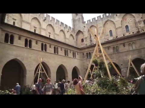 Alterarosa, dans la cour du Cloître Benoit XII, au coeur du Palais des Papes, découverte de l'exposition des plus belles roses.