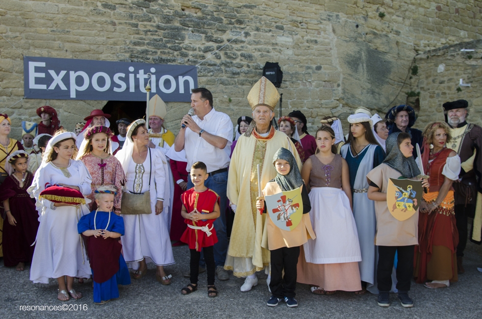 Près de 200 comédiens ont déambulé devant les clics des appareils photos en rafale, dans les ruelles de Châteauneuf du Pape, descendant du Château à la place du Village par un défilé déguisé de reconstitution médiévale.