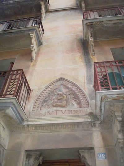 Fanny Rogolini : Mon travail va commencer pour que la Villa Juturne soit de plus en plus connue, visitée j’ouvre très volontiers la porte de mon appartement qui est une partie de l’appartement personnel de mon grand-père. Malheureusement, dans la maison certains propriétaires d’appartements n’ont pas jugé bon de conserver les fresques ! Une partie de l’appartement de mon grand-père a été détruite dont la chambre où figurait le Christ gisant de Mantegna et la représentation qui entourait le Christ : des jeunes filles datant des « Années folles », de 1927 ! Mon grand-père était un personnage sans aucun doute… Ma mère me racontait que quand elle était arrivée dans cette famille Rogolini, elle avait découvert des tas de choses, une famille originale sans aucun doute ! Comme je vous l’ai dit, mon grand-père a vécu plusieurs années en Argentine, ma grand-mère Clémence vivait ici du fruit des locations, la Villa était aussi un moyen de subsistance. Comme vous le voyez j’ai beaucoup de travail devant moi ! Il faut se battre et je vais continuer à me battre pour que la Villa Juturne demeure dans l’histoire de l’art de la Côte d’Azur…