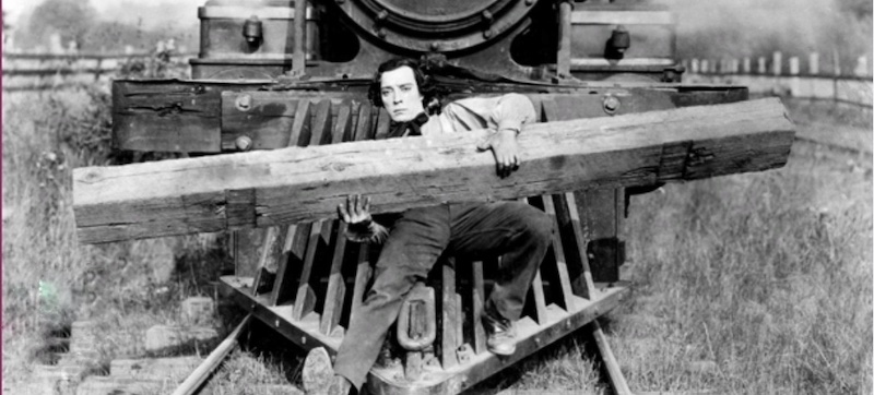 La scène où il enlève lui-même des poutres sur la voie de chemin de fer, tout en étant agrippé en équilibre précaire sur le devant de la locomotive en marche, montre à quel point Buster Keaton prenait des risques pour divertir son public.
