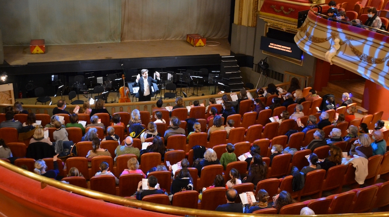 Afin de préparer au mieux le public à cette performance, deux répétitions furent organisées, la veille de la représentation pour un atelier d’apprentissage des chants et le jour même du spectacle, une heure avant le lever de rideau, pour chauffer la voix et réaliser une ultime répétition, sorte de générale mais côté salle cette fois, pour réinventer cet opéra et le rendre ludique et accessible aux enfants.