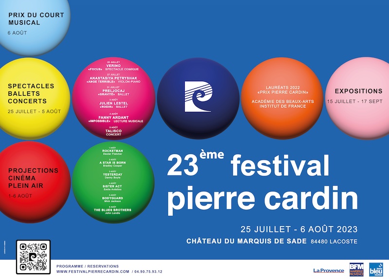 Le Festival Pierre Cardin 2023, à Lacoste dans le Luberon aura lieu du 25 juillet au 6 août au Théâtre des carrières situé à proximité du château du Marquis de Sade.