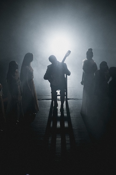 Entouré d’un chœur exclusivement féminin, avec María Reyes, Salomé Ramírez, Elena Ollero, Triana Manuel, Nerea Domínguez & Macarena Campos, l’artiste produit sur son auditoir un effet subjuguant. un effet subjuguant sur son auditoire.