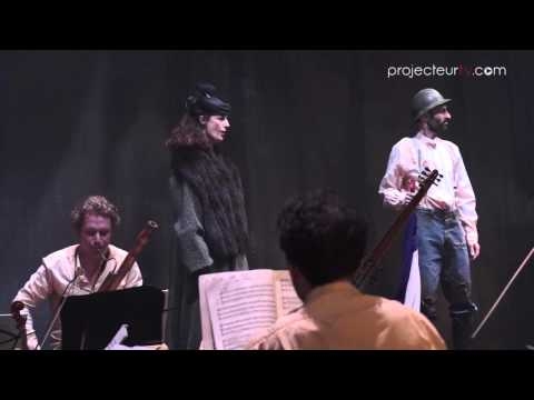 Mise en Scène de Caroline Mutel, celle ci à choisi de proposer de revisiter le livret à sa manière, fondée d'une histoire personalisée et guidée par la musique du compositeur, mettant avant tout en lumière les artistes, dont elle en fait elle même parti.