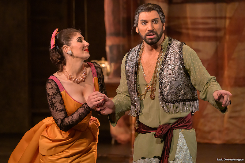 Grâce notamment à une mise en scène de Jean-Louis Grinda, aux costumes de Jorge Jara, aux lumières de Laurent Castaingt et aux décors de Rudy Sabounghi, ce sont deux merveilleuses représentations qui ont été proposées au public Grand Avignonnais. De la couleur, de la gaîté, une musique légère et joyeuse ont fait passer aux spectateurs de bien agréables moments musicaux. Certes, les airs de famille avec l’Italiana in Algeri (créé l’année précédente en 1813), sont évidents, mais peut-on reprocher au compositeur italien une écriture qui a généré de véritables « tubes » du genre ? Assurément non, surtout quand le plateau des solistes est aussi prestigieux.