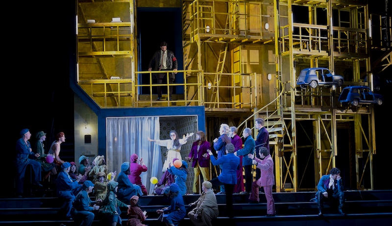 Chloé Dufresne : Du point de vue de la direction, ce n’est pas des plus complexes. Quand on ouvre un opéra de Puccini, ce n’est pas exactement la même chose ! Madame Angot, c’est une musique assez légère, assez « ludique ». Pour autant, c’est vrai que ça reste un opéra de près de 2h30 avec beaucoup de musique. Et puis il faut mettre en place avec tout ça et caler la musique avec toute la mise en scène avec un très gros décor en hauteur, ce qui génère comme un défi de mise en place lorsque les chanteurs sont très éloignés et en hauteur. On ne les entend pas de la même manière quand on est dans la fosse. Le décor, qui tourne, met parfois les chœurs ou les solistes à près de 9 mètres de haut.