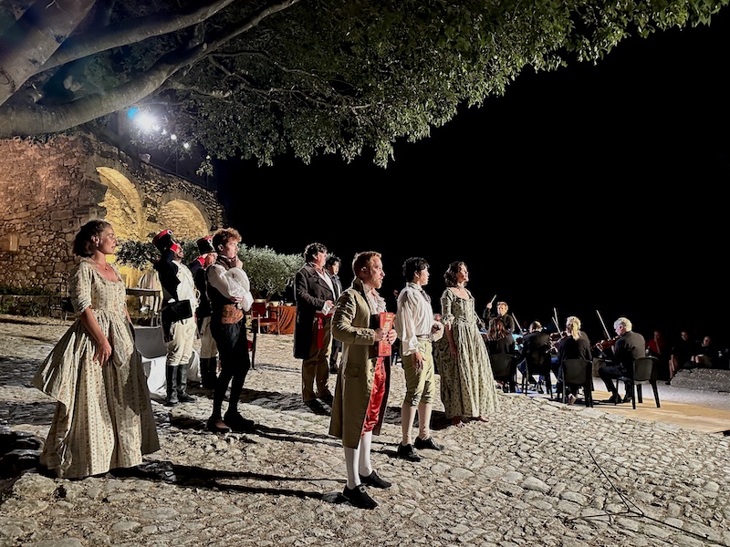 Après la trilogie de Mozart avec Don Giovanni, Cosi fan tutte et Les Noces de Figaro, pour cette édition 2024, avait lieu l'opéra Le Barbier de Séville de Rossini, interprété par une distribution internationale de jeunes talents, à l'orée d'une carrière internationale. Une mise en scène pour un opéra en plein air, au coucher de soleil, un envoûtement pour tous, que l'on soit mélomane ou pas ...