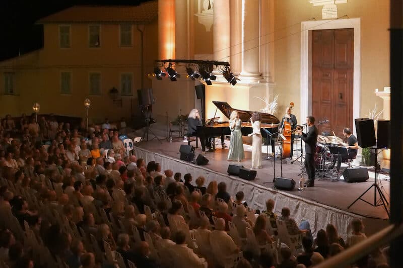 Nathalie Dessay, en duo avec sa fille Neïma Naouri, puis en trio avec Laurent Naouri, pour l'ouverture du Festival de Menton 2022. Un triomphe acclamé sur le parvis de la Basilique saint Michel !